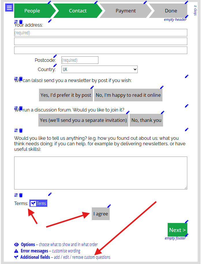In early 2024, Cameo added the ability to provide additional fields in join forms. You’ll find this on the second (contact) step of the form. Click the seedling icon (