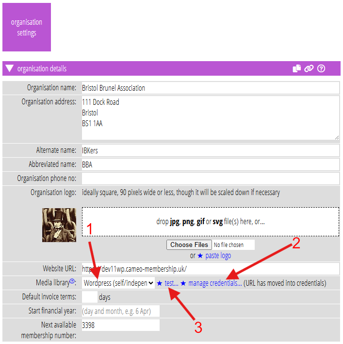 - Provide credentials allowing Cameo to talk to your media library. Usually, this will be at your organisation’s website, but if not you can also specify where to look along with the method-specific credentials (Fig 4: 2).